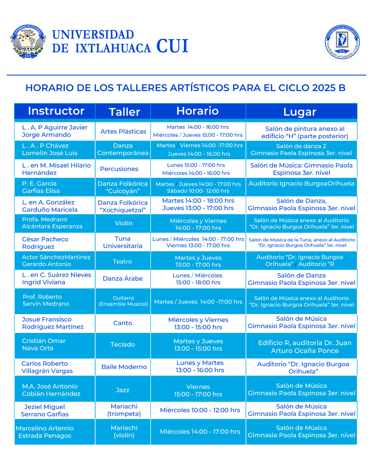 - Este documento es personal, por lo que lo tendrás que traer todos los días que te toca realizar actividades artísticas, y te servirá como justificante y lista a tu taller.